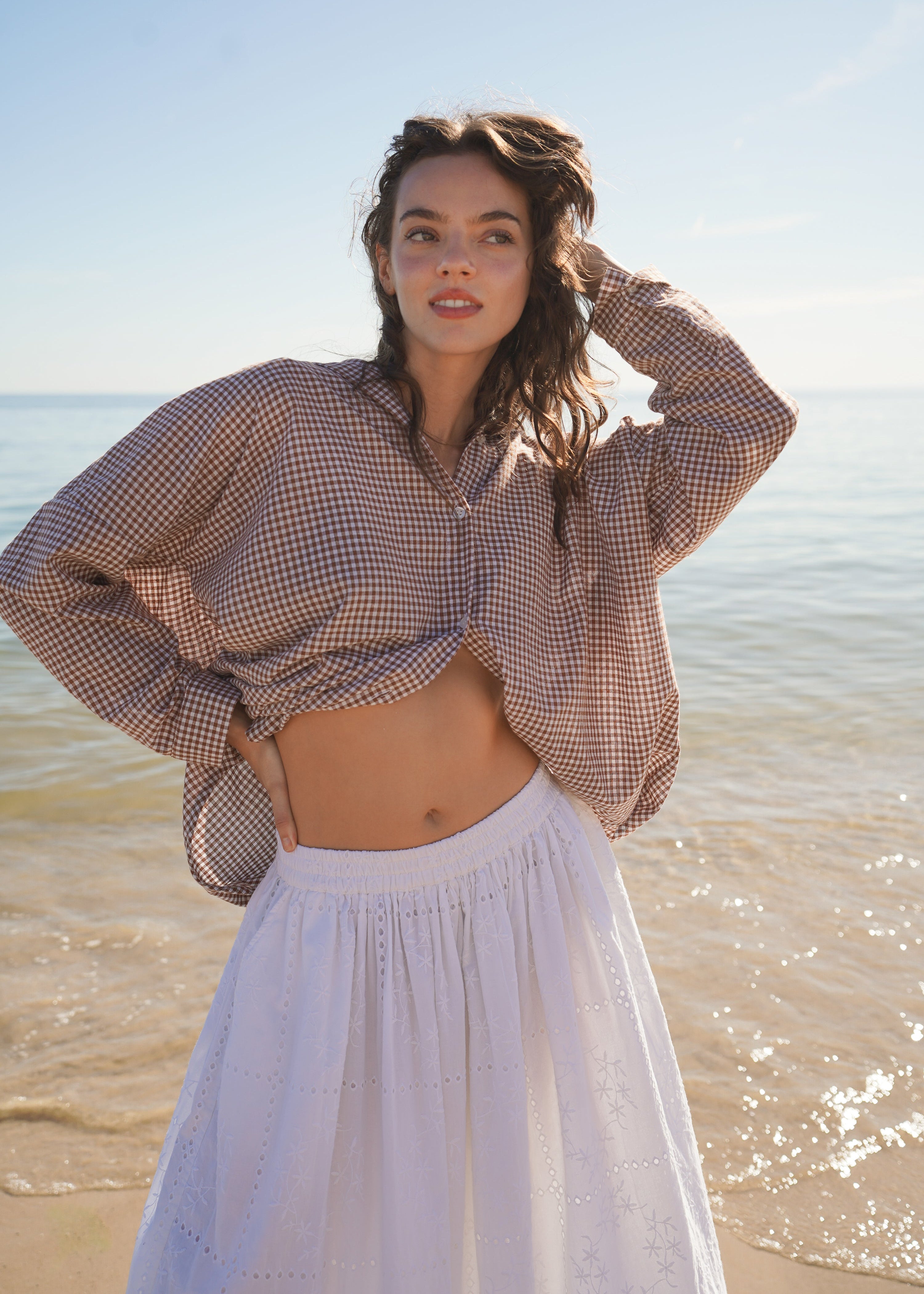 We love to style with our Lara Eyelet Skirt in white as worn by Ella.