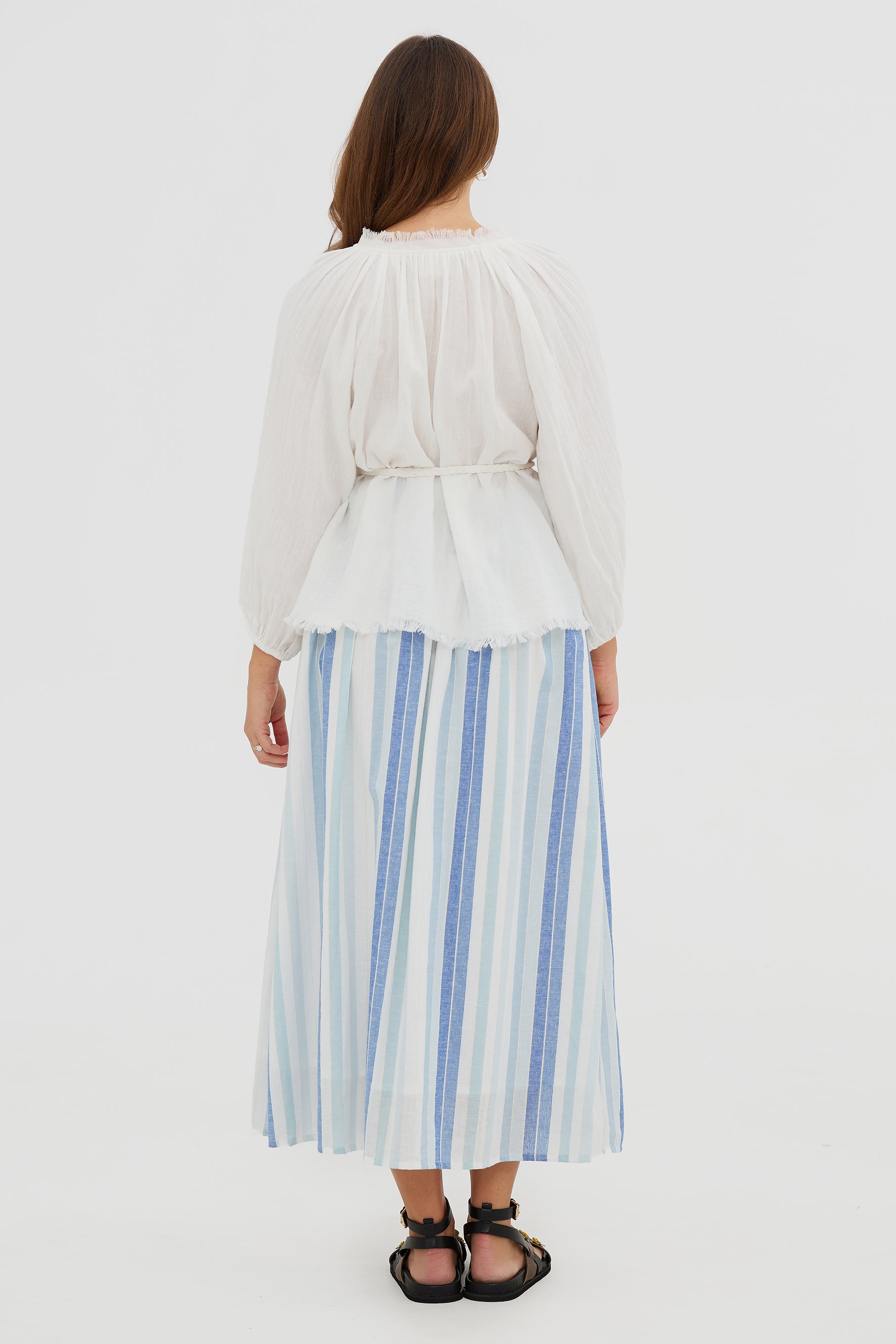 and an oversized fit for ease of movement. A mix of unbeatable comfort and effortless style, she is finished with hand-crafted raw-fringed hem and neckline.